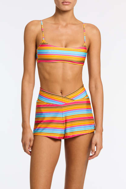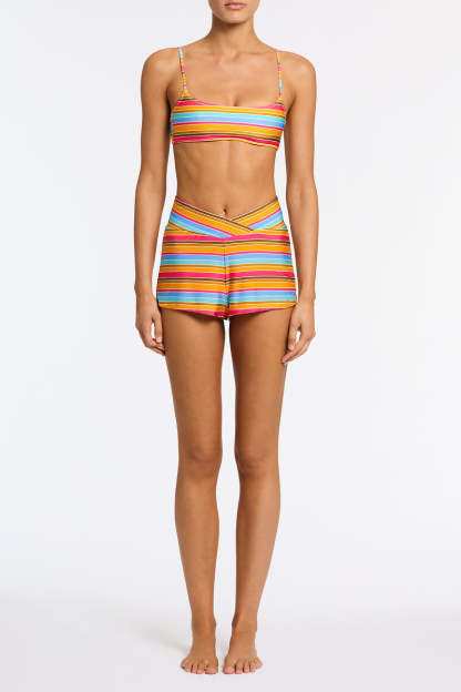 A loose fit high waist short in multicolour stripe. Features a crossed elasticized waistband.