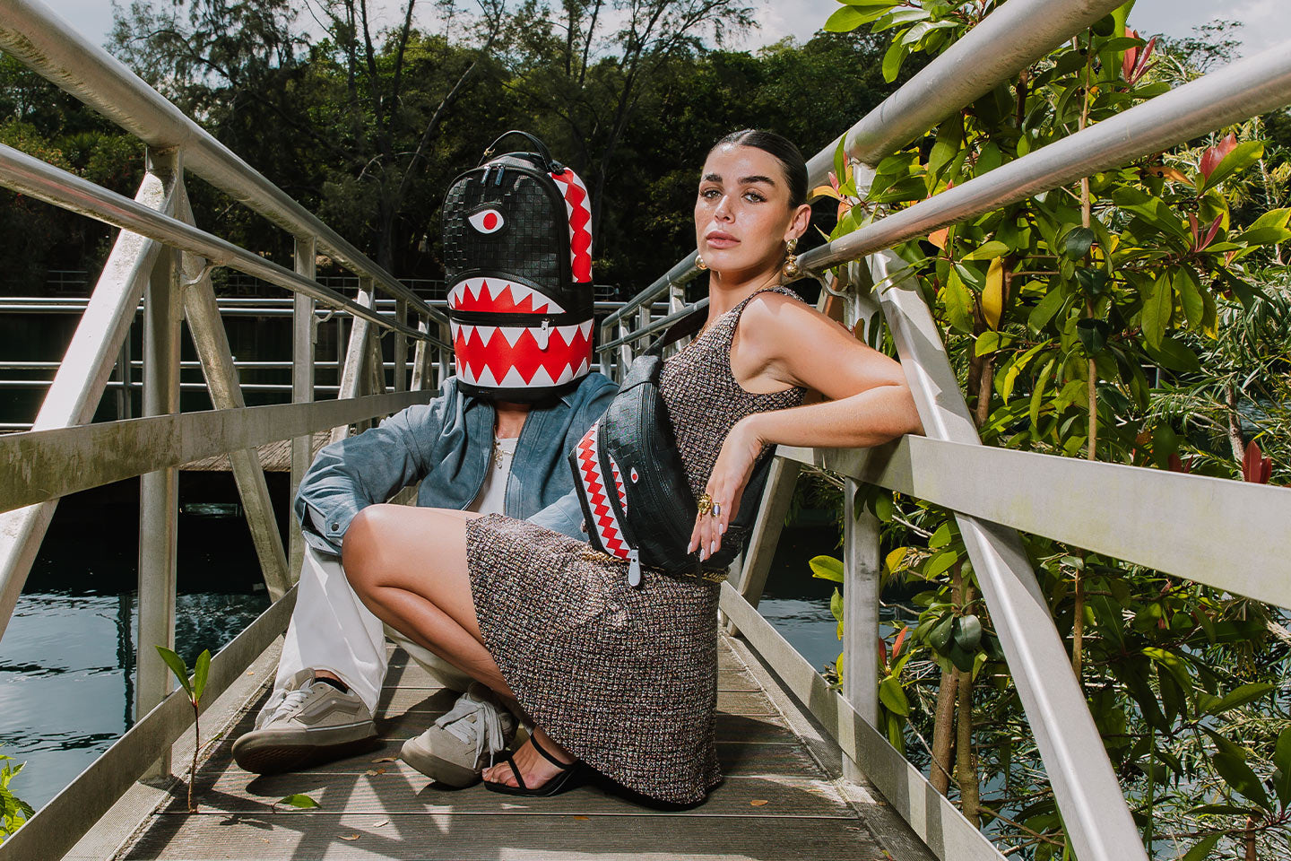 Dimensions: 18" x 6" x 11.5" ? Front zipper pocket ? Side pockets ? Zippered Stash pocket ? Separate velour sunglass compartment ? Ergonomic mesh back padding ? Adjustable Straps for custom sizing ? Gold zippers with metal hardware ? Metal "Sprayground Authentic" badge ? Slide through back sleeve connects to carry-on luggage to free your hands