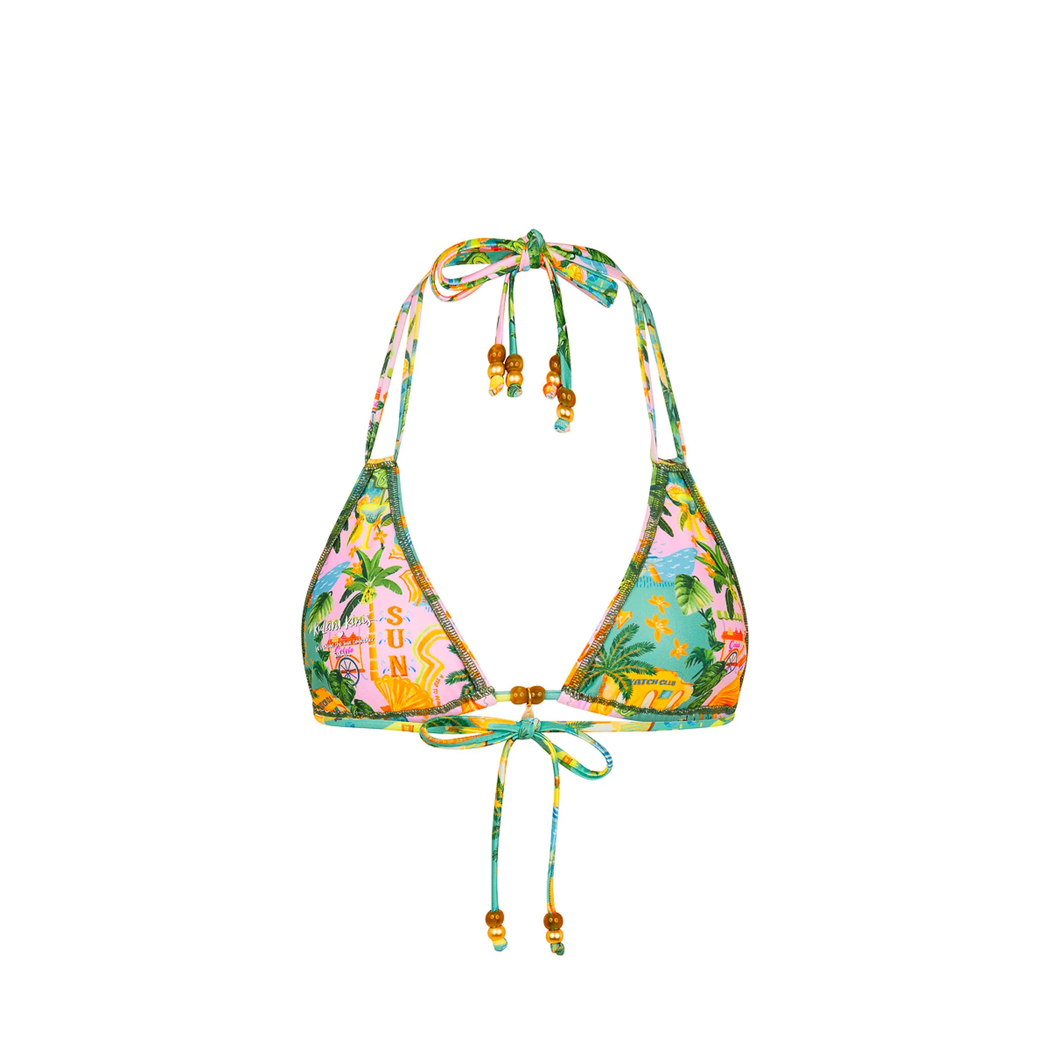 This halter neck tanning top provides ultimate adjustability and a secure fit, with double string neck ties for added support and lift—perfect for D+ cup sizes!