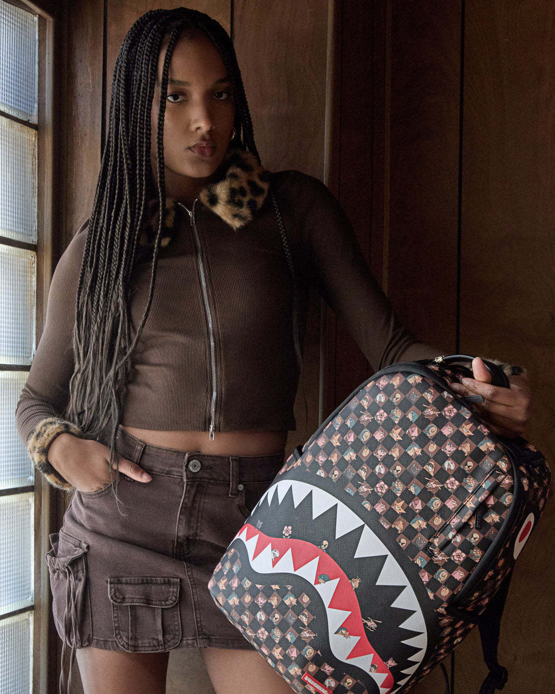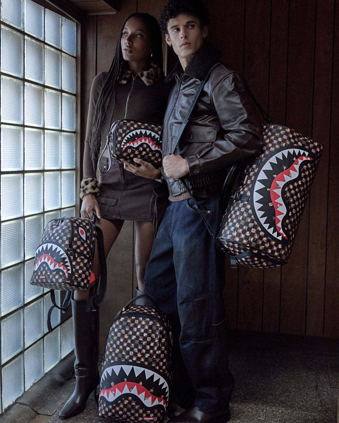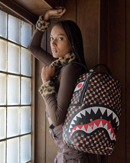 Dimensions: 18" x 6" x 11.5" ? Front zipper pocket ? Side pockets ? Zippered Stash pocket ? Separate velour sunglass compartment ? Ergonomic mesh back padding ? Adjustable Straps for custom sizing ? Gold zippers with metal hardware ? Metal "Sprayground Authentic" badge ? Slide through back sleeve connects to carry-on luggage to free your hands