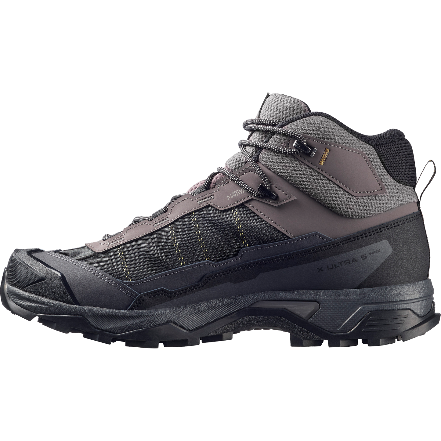 The X Ultra 5 Mid Wide Gore-Tex is a dependable,confidence-boosting hiking ally. Lightweight yet stable, it's as good at charging up hills as at tackling descents. Designed to keep you safe and agile on trails, with an ultra-durable Matryx®️ upper, a long lasting Contagrip outsole for grip and a collar area tailored for lasting comfort.